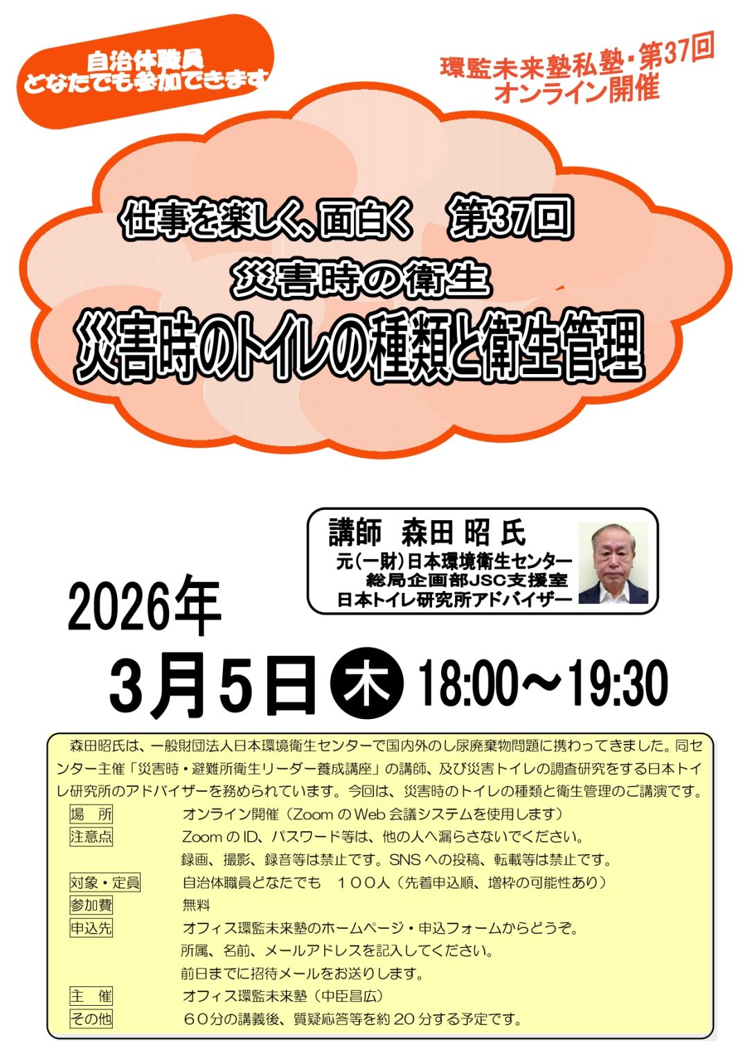 災害時の衛生【自治体職員対象】第35回環監未来塾私塾・無料講演会